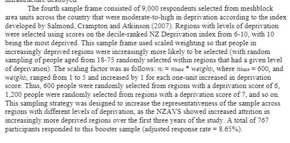 Many academics transitioning to market research and evaluation struggle with the difference in what is considered sufficient in terms of methodological robustness. For example, this is a 172-page document describing the sampling for the New Zealand Attitudes and Values Study. They use the electoral roll, contact people by post , try to reach the same person several times, use multiple sample frames etc. to ensure the sample is as representative as possible. This is the academic gold standard.
